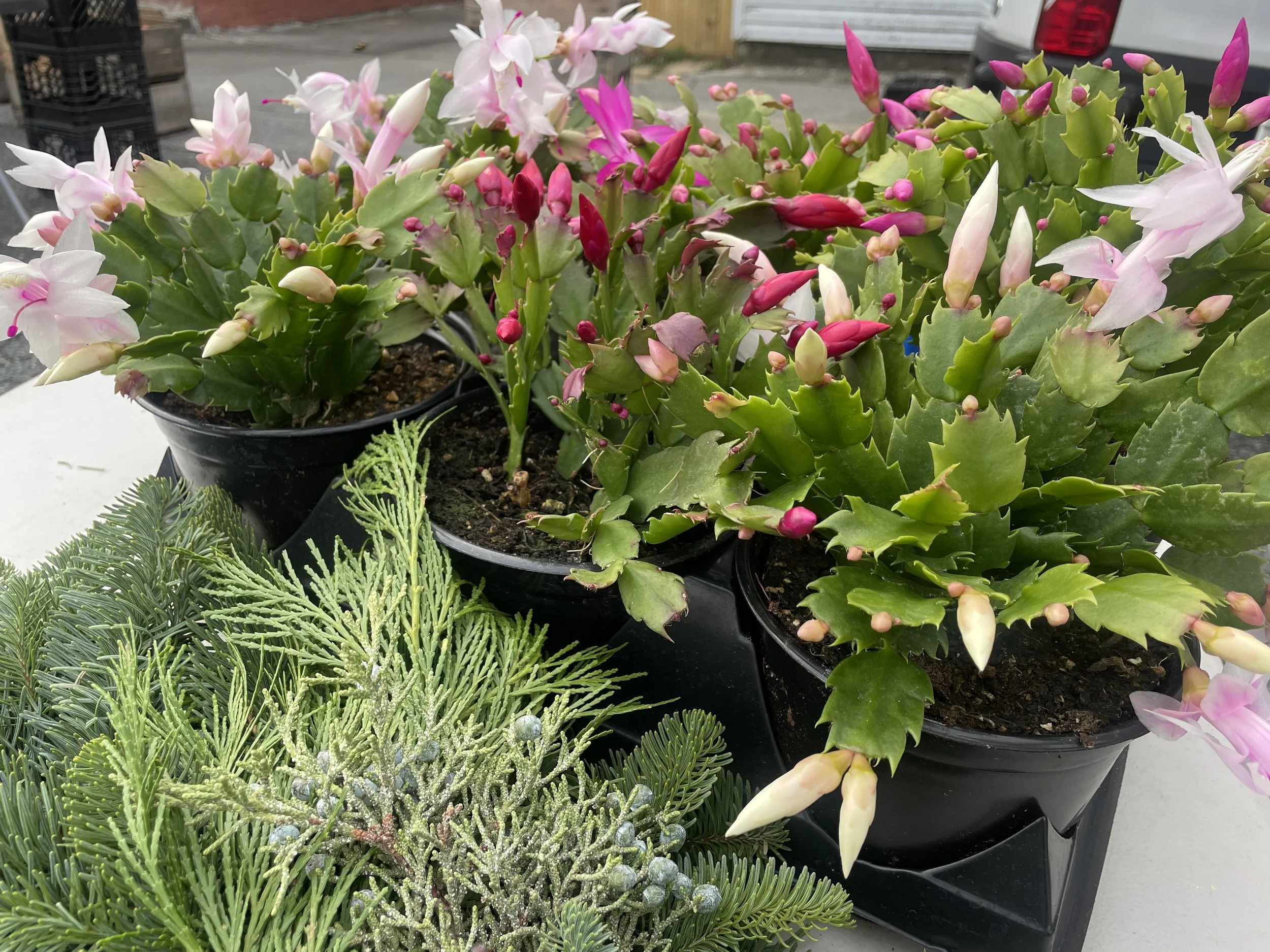 Finally, I can’t overlook Christmas cactus and poinsettia. These two mountain plants love a bright spot in the heat of your house but differ in moisture requirements. The three species of commercially available ‘Christmas cacti’ differ by their flowering time—Easter (Schlumbergera gaertneri), Thanksgiving (S. truncata), and Christmas (S. x buckleyi). These low growing succulents herald from the jungles of Brazil, but will thrive in an east facing Baltimore window with an occasional mist of water. They like to be watered thoroughly, but need a well-draining, cactus type soil to prevent root rot.